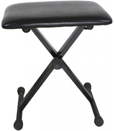 Banqueta para teclado en X con altura regulable y tapicería imitación piel color negro.
