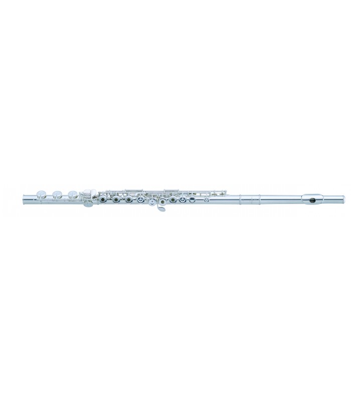 La flauta Pearl F525-R tiene el cuerpo y la cabeza plateada mientras que la chimenea y la embocadura son de plata. Platos abiertos y desalineados. Además tiene mecanismo de Mi