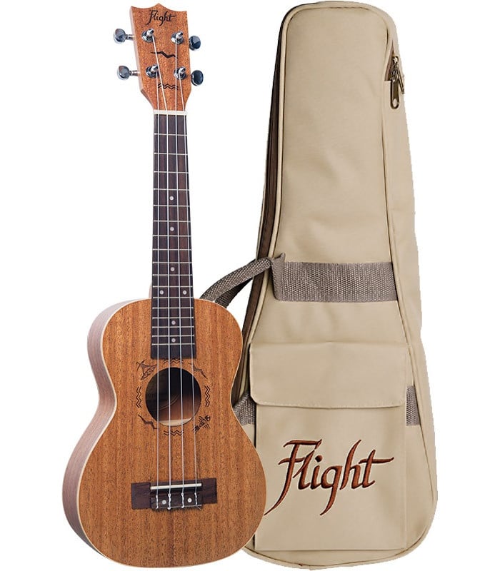 Este modelo viene equipado con cuerdas Aquila Super Nylgut y una funda acolchada incluida. Además Flight te regala un manual con acordes básicos.